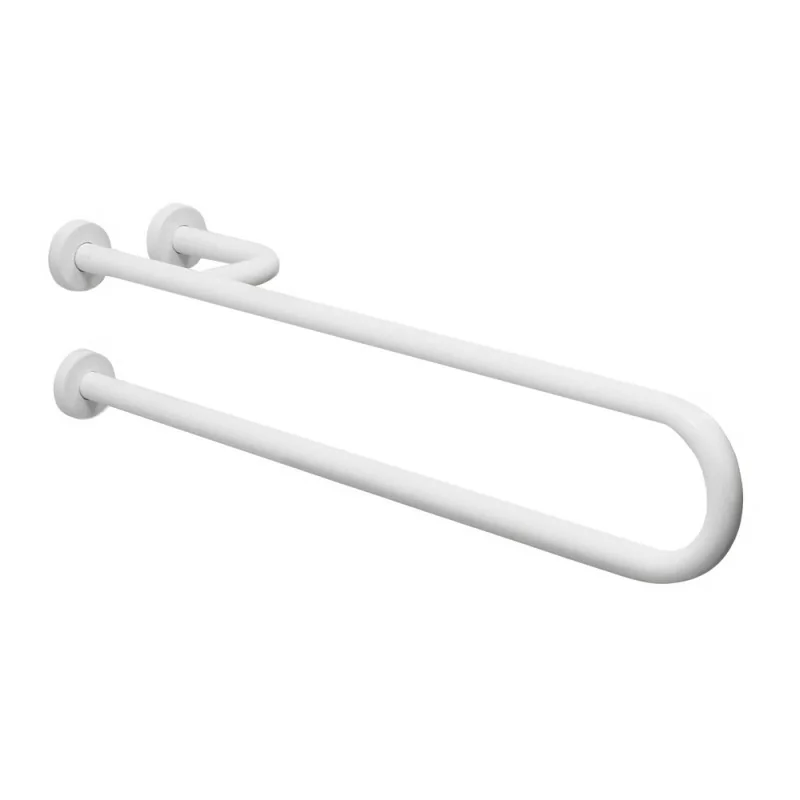 Barra di sostegno bianca 65 cm sinistro con rinforzo, stabile e sicura per bagno e ambienti assistiti. Materiali resistenti, facile da lavare e montare.