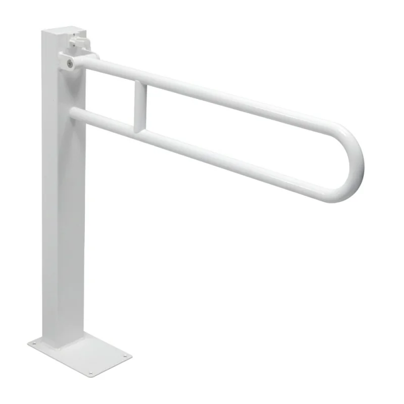 La barra di sostegno ribaltabile a colonna 65 cm in acciaio bianco con porta rotolo integra stabilità, autonomia e ingombro ridotto. Ideale per wc e bagni accessibili anche senza pareti portanti.