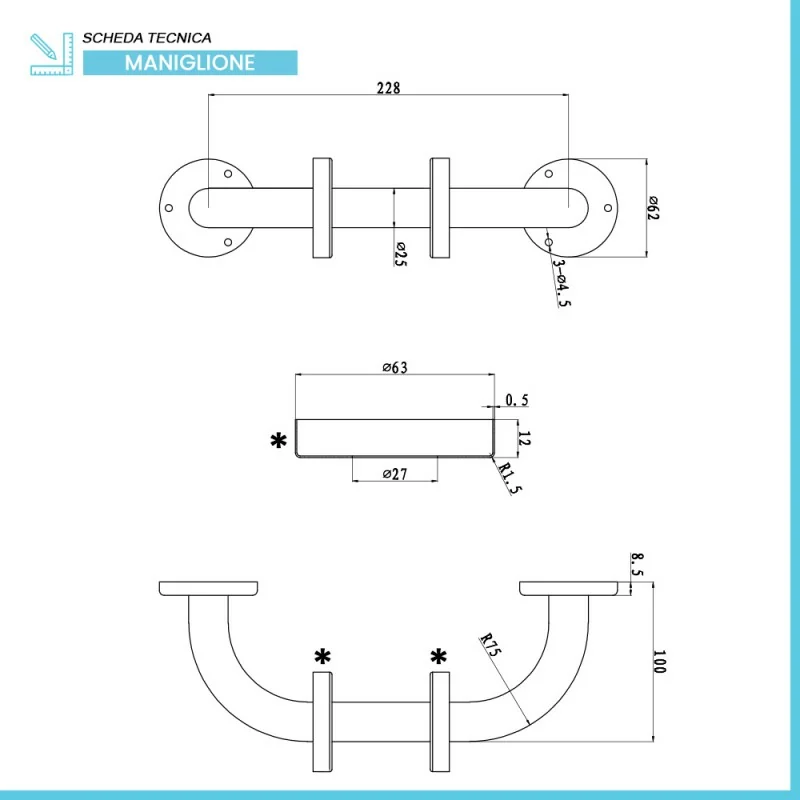 • Tipologia:maniglione di sostegno;