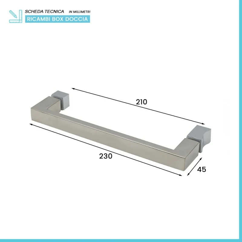 Maniglia per ricambio porta doccia dentro-fuori,in acciaio cromato con fissaggi inclusi