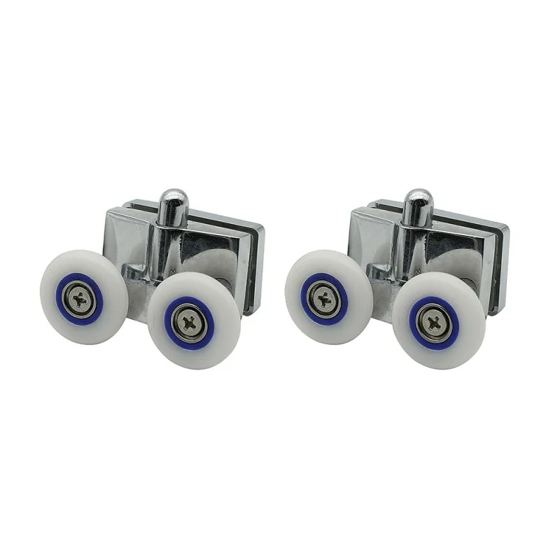 Coppia di carrucole inferiori universali per box doccia scorrevole,in acciaio cromato e sgancio rapido