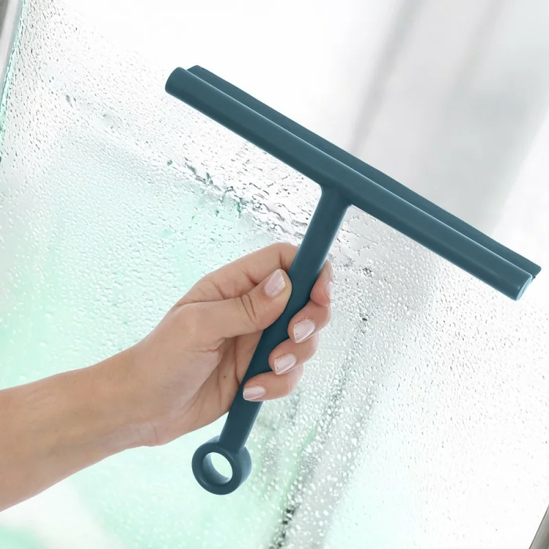 Spatola tergivetro per doccia con gomma antigraffio e manico ergonomico, disponibile in diversi colori