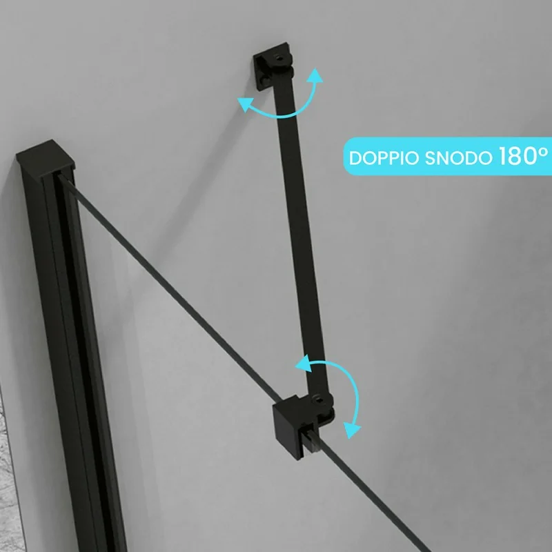 Il braccio di supporto per parete doccia Walk-in con doppio snodo a 180° offre stabilità e adattabilità al tuo box doccia. In acciaio nero opaco, unisce resistenza ed eleganza, con estensione regolabile 70–110 cm per adattarsi a diverse configurazioni.