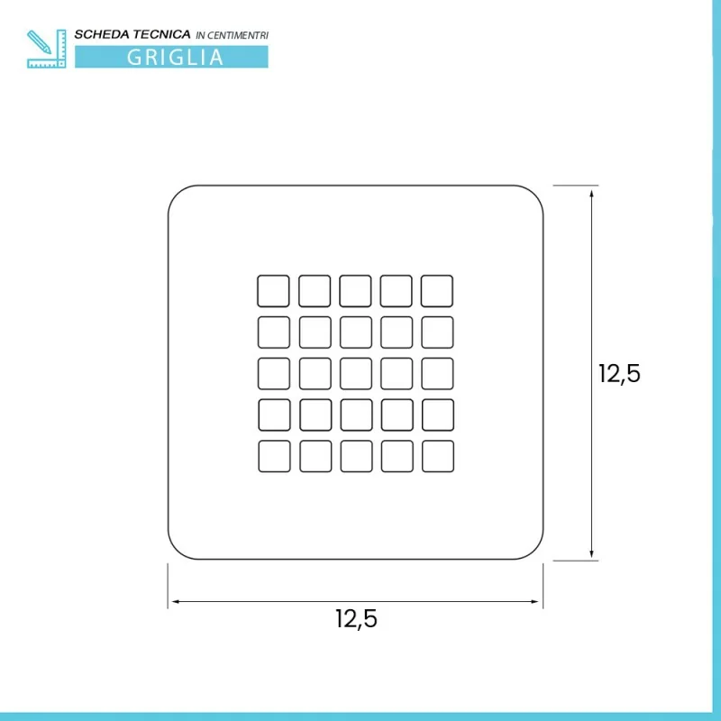 Griglia per piatto doccia in acciaio inox quadrata 12,5x12,5 cm