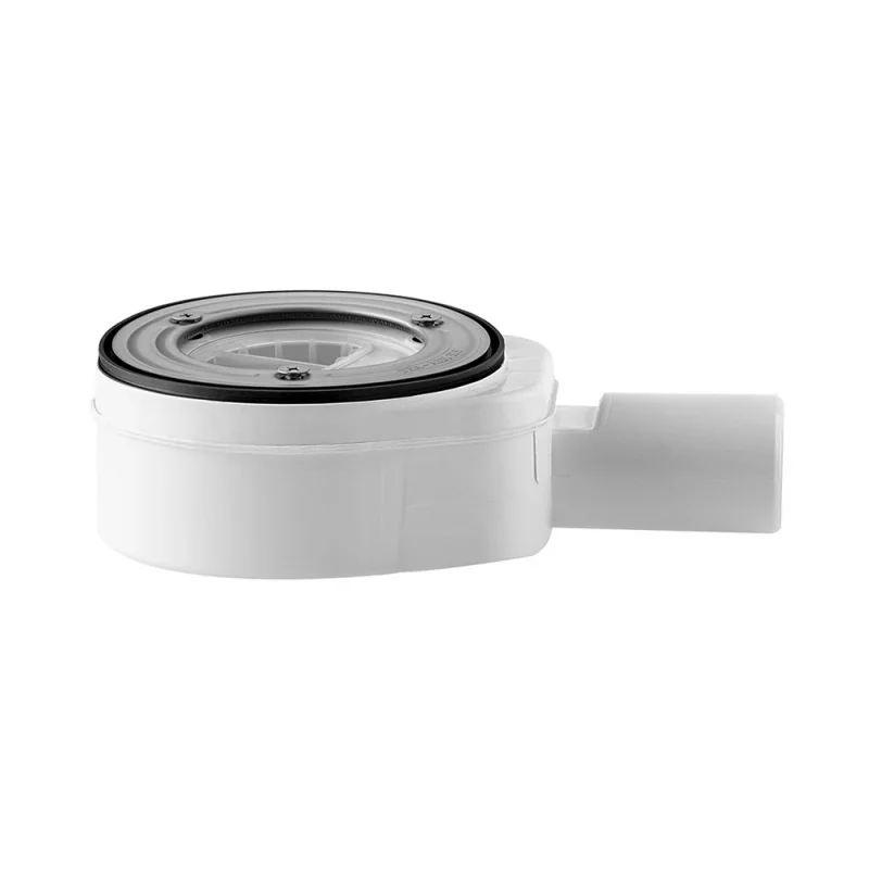 Questa piletta in polipropilene bianco è specificamente progettata per piatti doccia con foro di 90 cm di diametro e presenta una guarnizione a doppio labbro per piatto doccia in acrilico. Il design senza griglia e l'uscita laterale liscia di 40 mm di diametro assicurano un deflusso efficiente e un aspetto pulito.