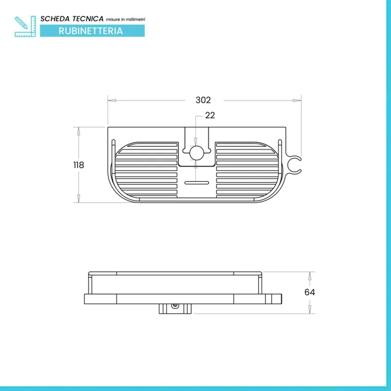 • Dimensioni:L 30,2 x P 11,8 x H 6,4 cm;