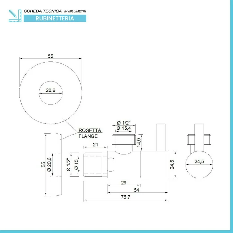 Questo rubinetto sottolavabo ha un attacco da 1/2” x 1/2",universale per la maggior parte degli impianti idrici e dei rubinetti. Ha un design tondo ed include una leva d'arresto per regolare l'apertura e la chiusura dell'acqua.