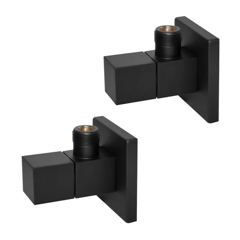 Eleganti valvole da arresto sottolavabo in confezione da 2 pezzi in ottone massiccio, un design quadrato con finitura nero opaco che completa l’arredo bagno in modo differente.