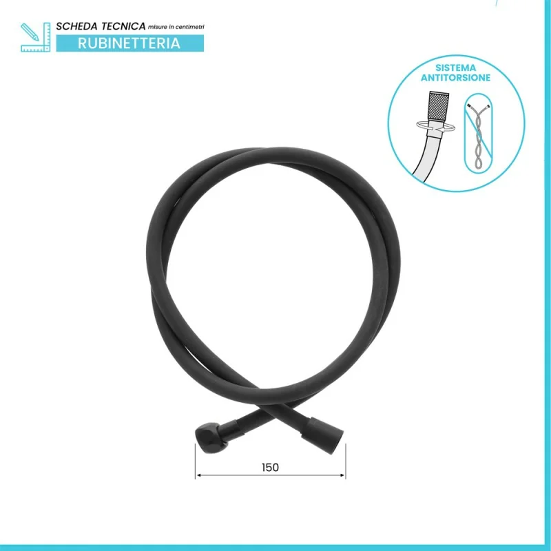 Laccio doccia 150 cm in silicone nero antitorsione Hidra Laccio doccia 150 cm in silicone nero antitorsione Hidra Scheda tecnica Laccio doccia 150 cm in silicone nero antitorsione Hidra