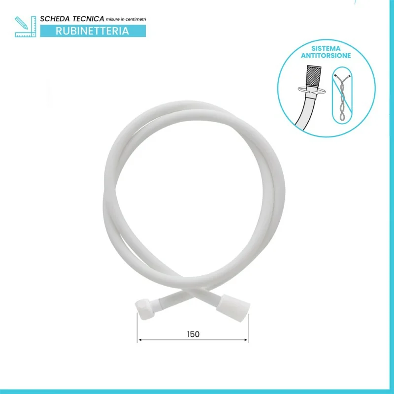 Laccio doccia 150 cm in silicone bianco antitorsione Hidra Laccio doccia 150 cm in silicone bianco antitorsione Hidra Scheda tecnica Laccio doccia 150 cm in silicone bianco antitorsione Hidra