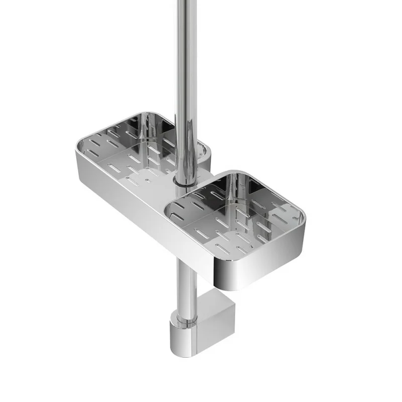 La mensola saliscendi cromo è molto utile per organizzare tutti i prodotti all’interno della doccia con i suoi due appositi alloggi. Va posizionata direttamente sull’asta saliscendi grazie al suo foro compatibile con la maggior parte delle aste doccia da 18, 22, 25 cm di diametro.