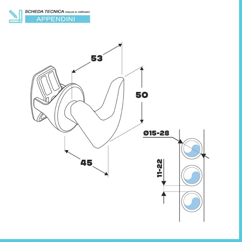 • Tipologia:Set 2 appendini doppi per scaldasalviette e termoarredo