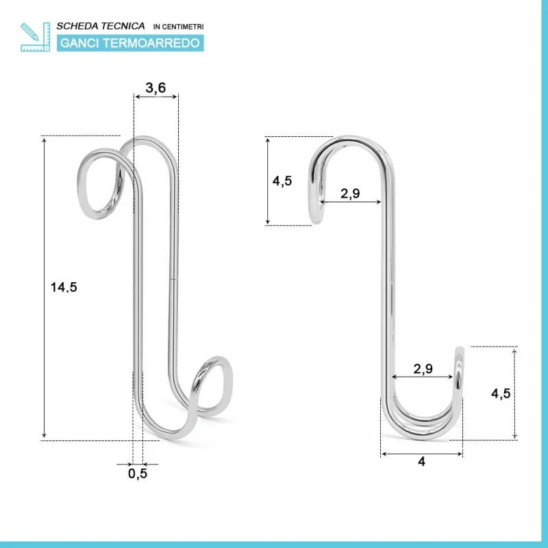 Il set di ganci termoarredo è una delle soluzioni più intuitive e facili da usare per ultimare con funzionalità sia lo scaldasalviette che il box doccia. Gli appendini per termoarredo presentano degli appositi ganci che si incastrano con semplicità sui tubi dello scaldasalviette,o in alternativa sul profilo della cabina doccia,che consentono di riporre in modo sicuro e stabile tutti i propri asciugamani e accappatoi.