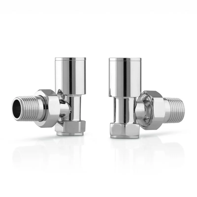 Valvole per termoarredo con design tondo cromo attacco universale G 1/2 complete di raccordi per tubi in rame da 12 mm