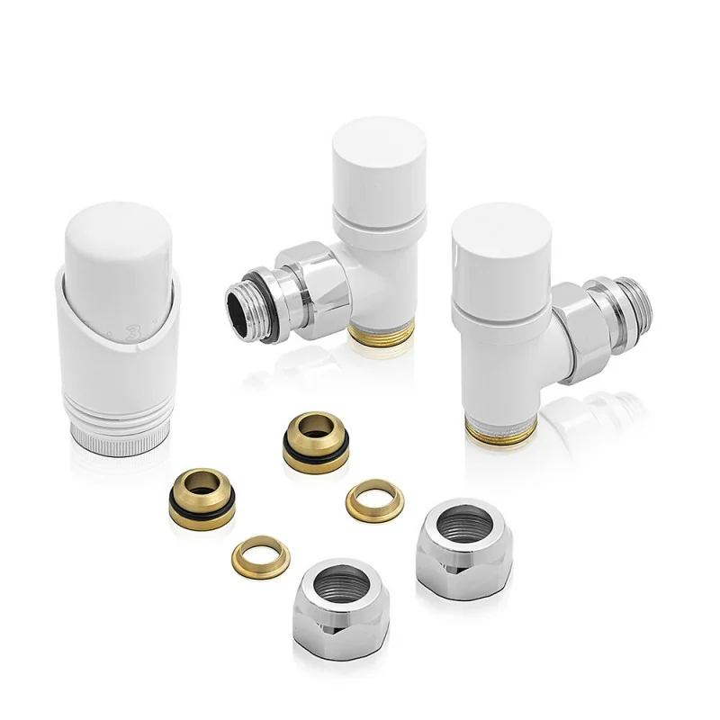 Valvole per termoarredo bianche con testa termostatica e raccordo rame 12 mm