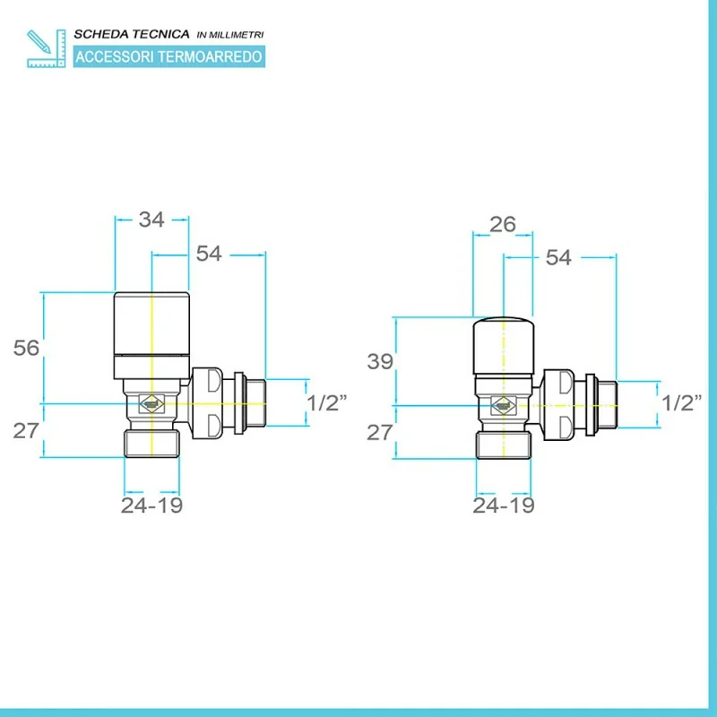 • Misura standard universale G 1/2",compatibile con qualsiasi termoarredo in circolazione;