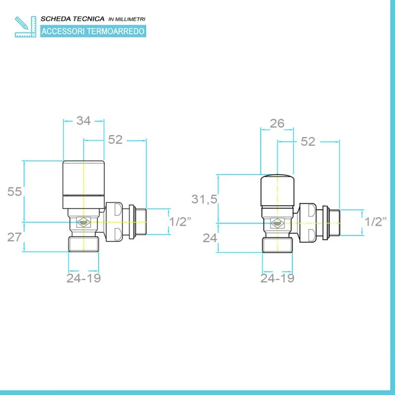 • Misura standard universale G 1/2",compatibile con qualsiasi termoarredo in circolazione;