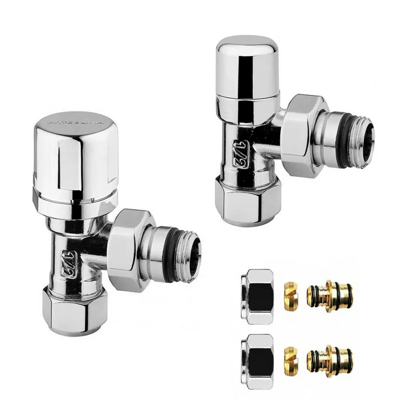 Il kit valvola e detentore rappresenta una soluzione innovativa e di design che collega il termoarredo all’impianto idraulico,consentendo di aprire/chiudere manualmente il flusso d'acqua,e regolare l'afflusso e la temperatura del termoarredo. La valvola e detentore sono realizzati in acciaio cromato di alta qualità resistente all'usura e alla corrosione,perfetto per usi intensi e prolungati nel corso del tempo.