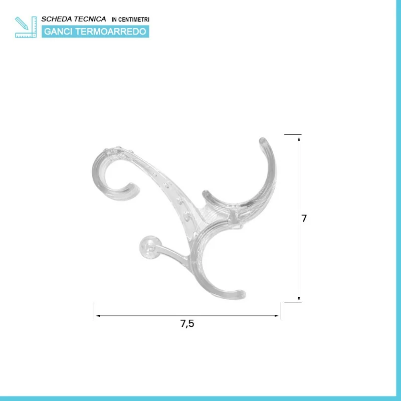 Facile e comodi da applicare,gli appendini per termoarredo hanno un doppo aggancio,progettato per rafforzarne la tenuta e renderla più sicura. Ideale per tutti i modelli di termoarredi a tubi con diametro da 18 a 26 mm,i ganci sono realizzati in materiale plastico termoresistente e trasparente,proposti in comodo set da due pezzi.