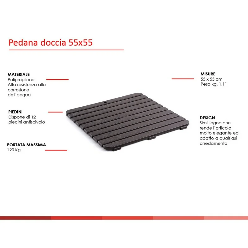 Pedana antiscivolo per doccia 55x55 cm in polipropilene con finitura marrone Scheda tecnica pedana doccia antiscivolo 55x55 cm in polipropilene marrone Pedana antiscivolo doccia 55x55 cm in polipropilene con finitura marrone