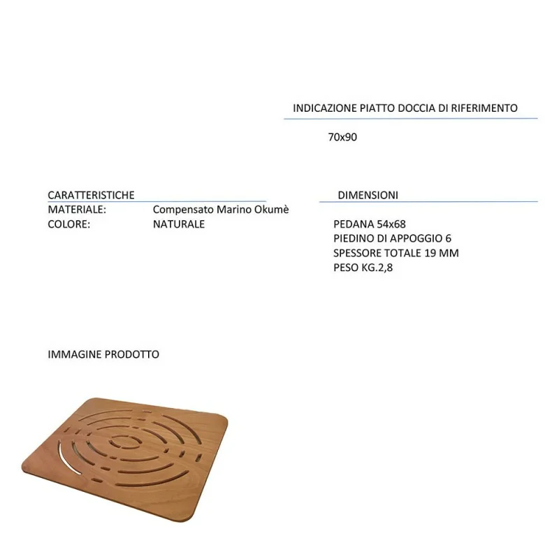 La pedana doccia è un supporto antiscivolo integralmente progettato in compensato marino di Okumé,materiale impiegato prevalentemente in campo nautico,per le eccezionali caratteristiche di resistenza e durata a contatto con l’acqua.