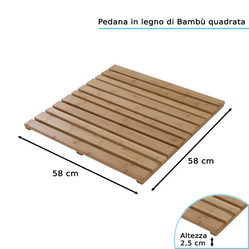 Pedana doccia antiscivolo in legno bambù, ideale per piatto doccia 80x80 e 90x90 cm