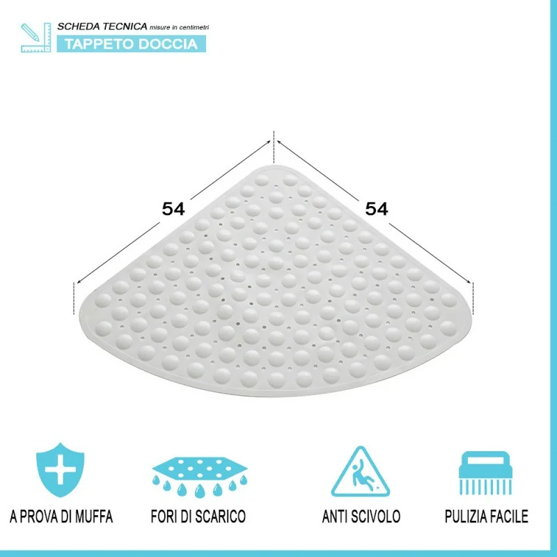 Tappeto antiscivolo in PVC angolare bianco per box doccia angolari
