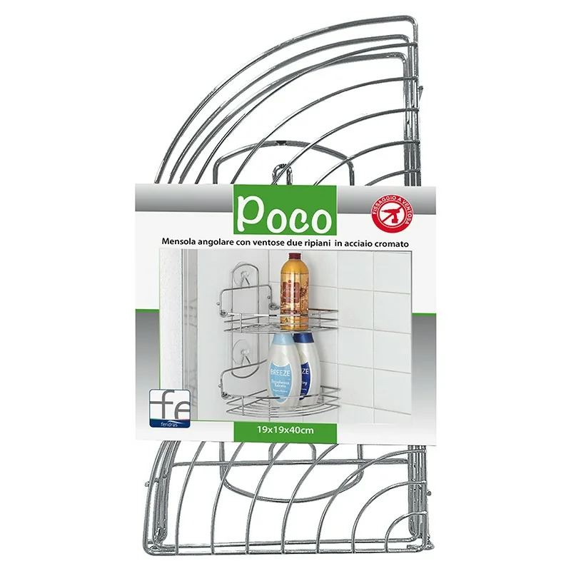 Gli accessori per l'ambiente bagno sono fondamentali per garantire a tutta la famiglia un'esperienza di benessere quotidiana. La mensola angolare con 2 ripiani pieghevoli in acciaio cromato lucido si appende al box doccia con ventose fornite all'interno della confezione.