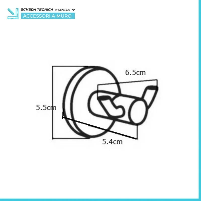 Appendino a muro con doppio gancio in metallo cromato e viti incluse