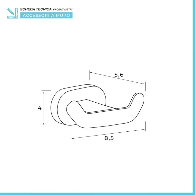 • Dimensione placca a muro:L 6 x H 3.5 cm,interasse tra fori di fissaggio 2,5 cm;