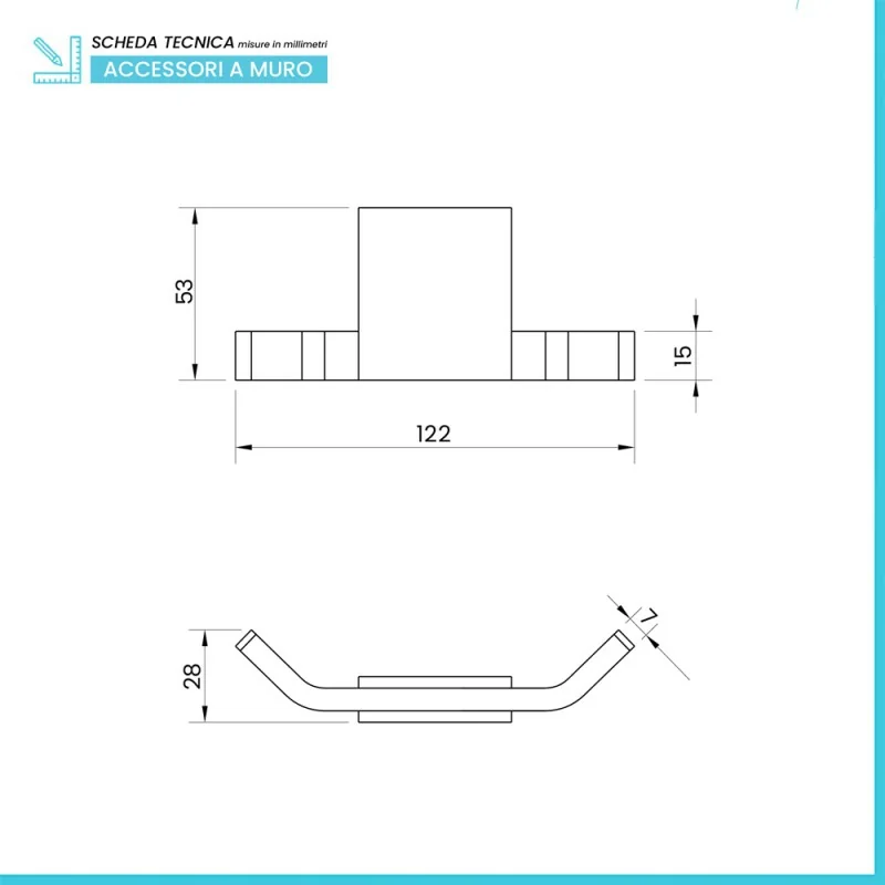 Appendino a muro con doppio gancio in acciaio cromato Futura Scheda tecnica Appendino a muro con doppio gancio in acciaio cromato Futura Appendino a muro con doppio gancio in acciaio cromato Futura