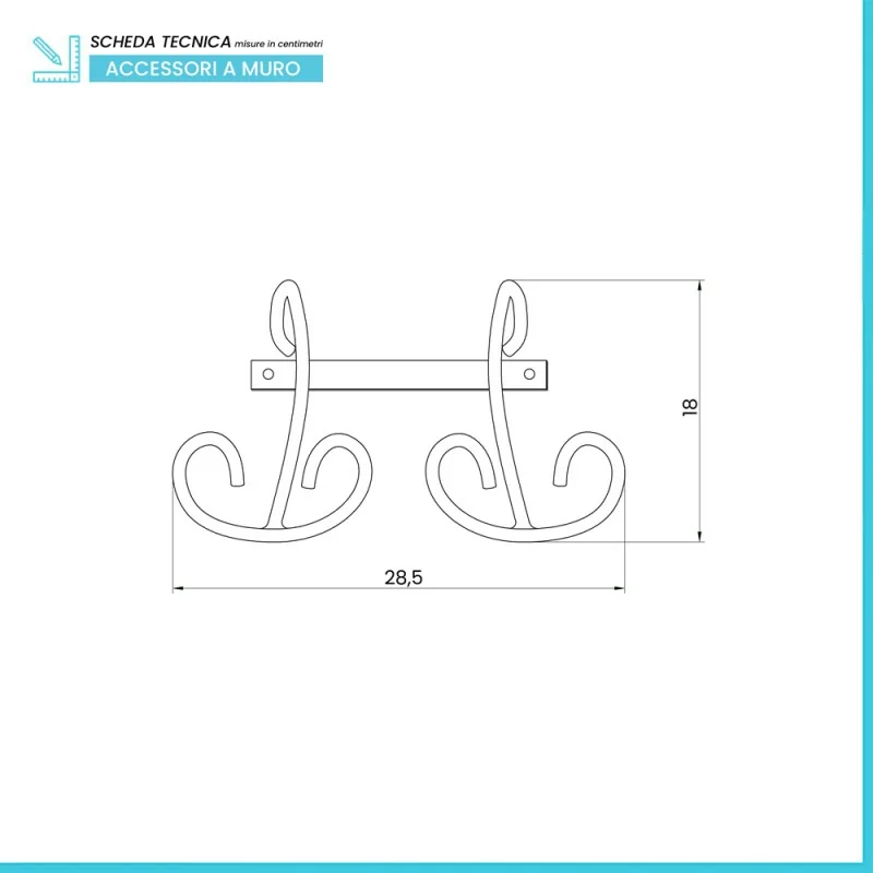 Appendino porta asciugamani doppio in ferro battuto nero Siena Appendino porta asciugamani doppio in ferro battuto nero Siena scheda tecnica
