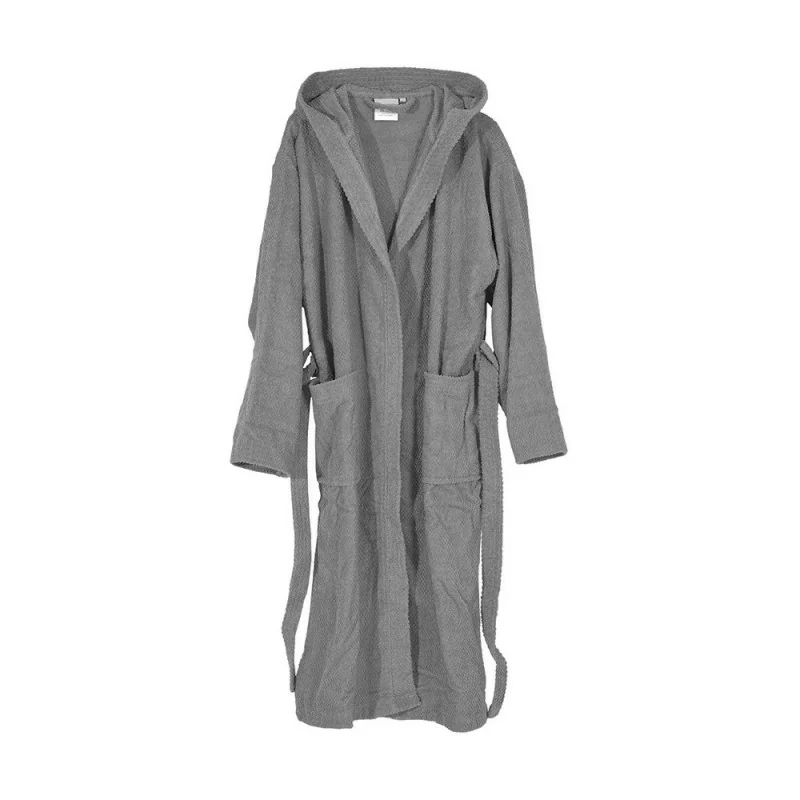 Accappatoio 100% cotone grigio taglia S con cappuccio tasche e cintura Accappatoio grigio taglia S con cappuccio tasche e cintura Accappatoio taglia S con cappuccio tasche e cintura