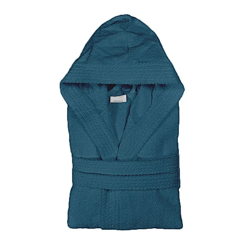 Accappatoio turchese 100% cotone taglia L con tasche cappuccio e cintura