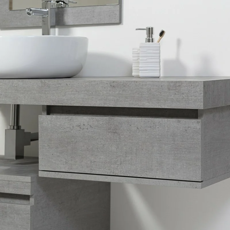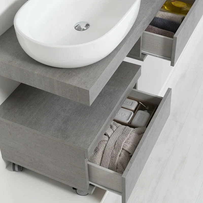 Cassettiera bagno su ruote in nobilitato melaminico colore cemento