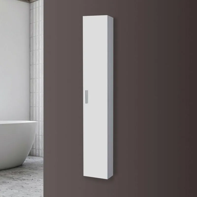 Pensile bagno sospeso H. 150 cm bianco lucido con anta reversibile Colonna bagno sospesa H. 150 cm bianca lucida con anta reversibile Scheda tecnica pensile bagno sospeso H. 150 cm bianco lucido con anta reversibile Mobile pensile bagno H. 150 cm bianco lucido con 4 ripiani interni fissi