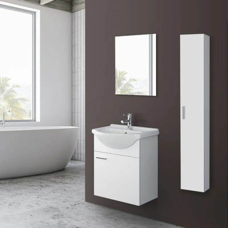 Pensile bagno sospeso H. 150 cm bianco lucido con anta reversibile