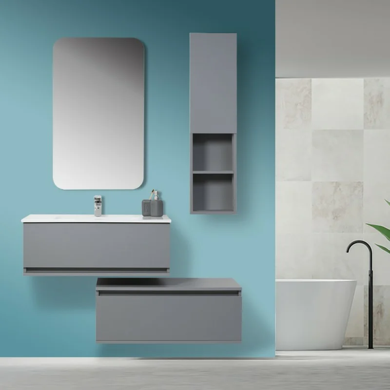 • Materiale mobile: legno mdf con finitura grigio pastello