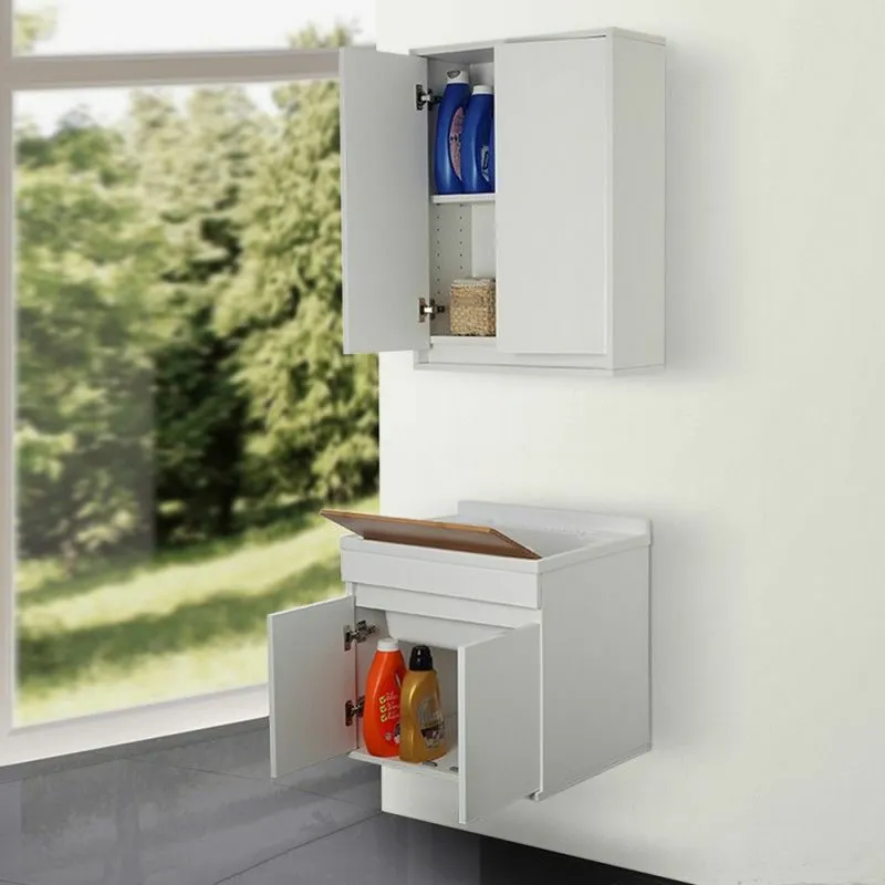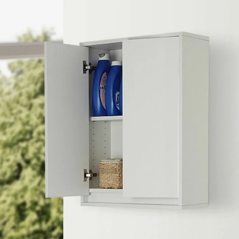 Pensile Lavanderia Bianco Lucido 2 Ante 60 cm  Salvaspazio con Ripiano Interno Feridras - 1