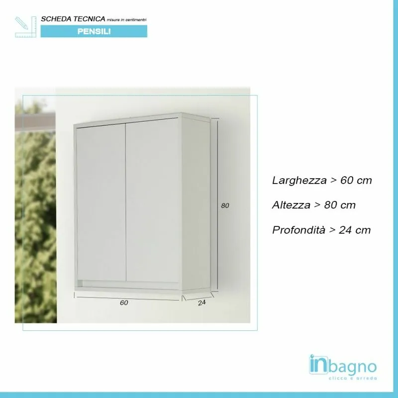 Il Pensile si adatta a qualsiasi tipo di ambiente,che sia il bagno o semplicemente la zona Lavanderia. Il Pensile Bagno 2 Ante viene fornito gia' montato,disponibile in diverse varianti di misura e colore.