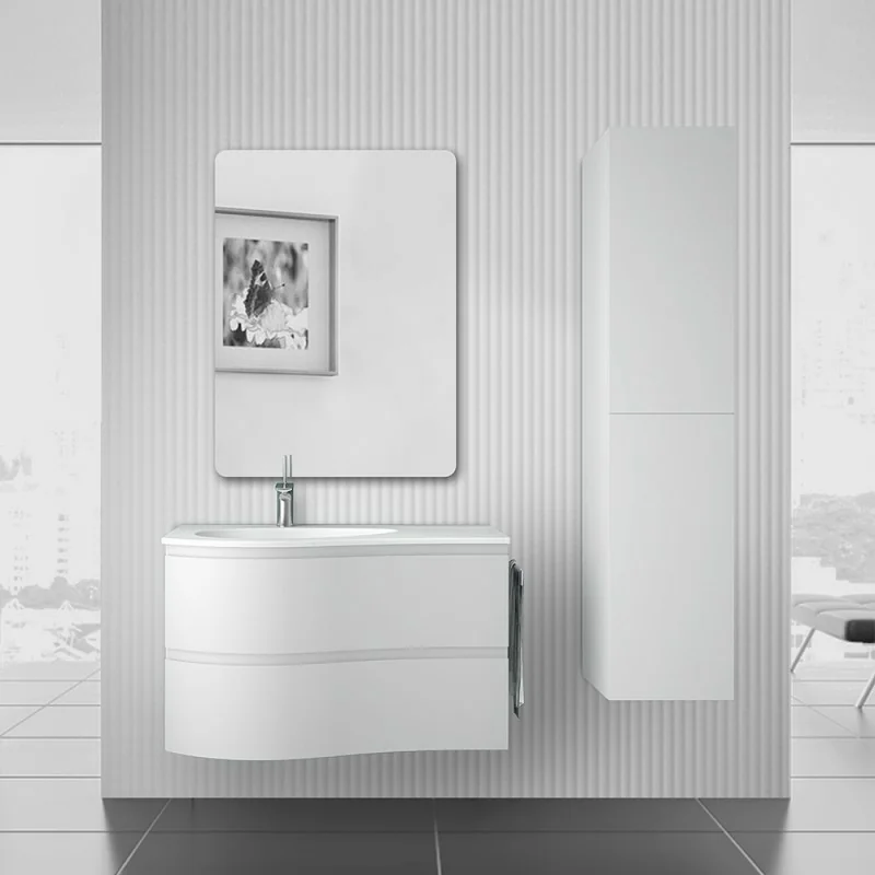 Melody è la soluzione d’arredo che meglio esalta qualsiasi stanza da bagno,composizioni sospese disponibili in diverse finiture e proposte con l’impiego di materiali di altissima qualità: mobile in legno MDF,lavabo in resina con vasca decentrata sia dx che sx e specchio con angoli stondati.