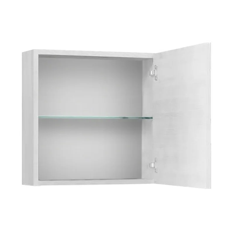 È composto da un’anta ad installazione reversibile con maniglia in ABS cromato lucido ed un ripiano interno regolabile in vetro,che offre un sicuro e comodo spazio ad hoc per riporre tutti i propri oggetti e accessori.