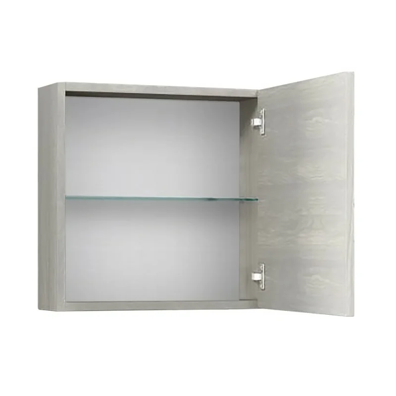 È composto da un’anta ad installazione reversibile con maniglia in ABS cromato lucido ed un ripiano interno regolabile in vetro,che offre un sicuro e comodo spazio ad hoc per riporre tutti i propri oggetti e accessori.