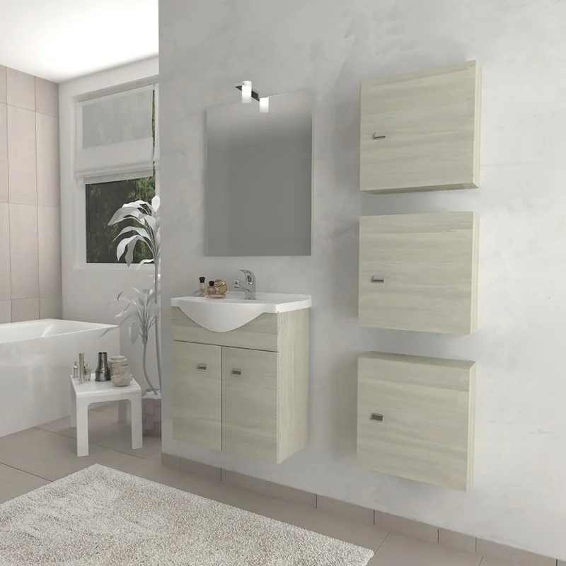 Pensile bagno 45 cm rovere grigio anta reversibile