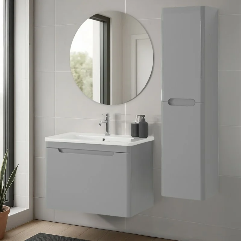 Colonna bagno sospesa 140 cm grigio lucido 2 ante soft-close Stillo