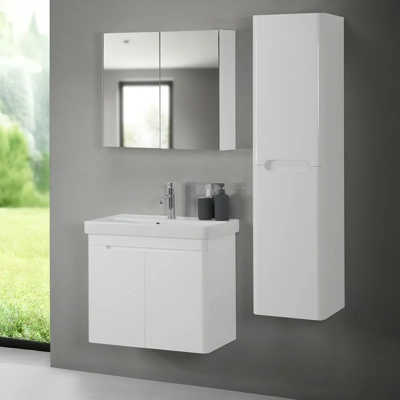 La colonna Stillo è disponibile nelle finiture bianco lucido, antracite lucido e grigio. E' perfettamente abbinabile con i mobili sospesi della serie Clip.