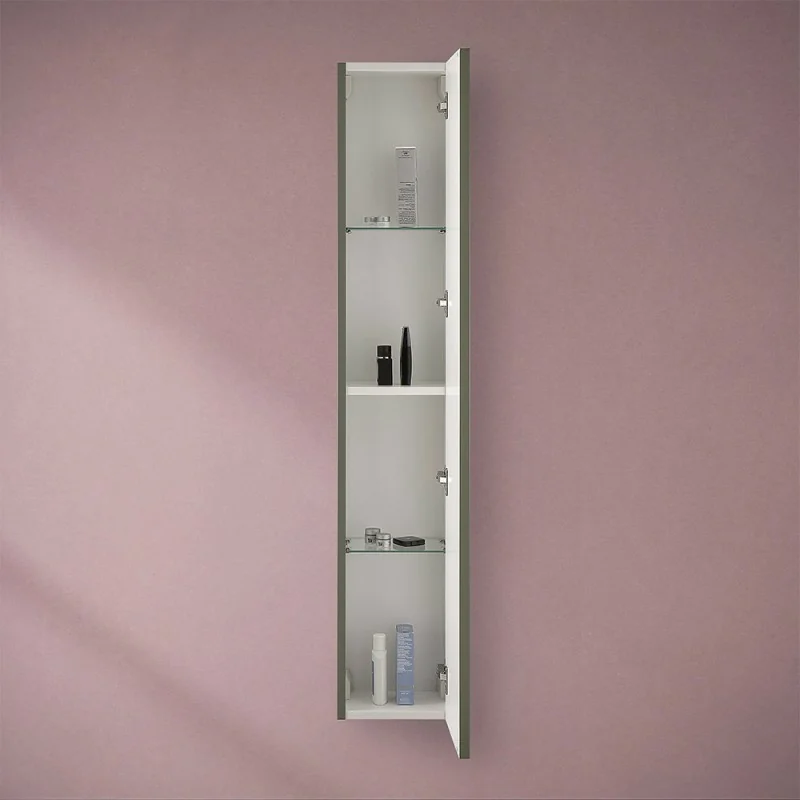 Pensile bagno sospeso – anta soft-close,installazione reversibile e ripiani regolabili in vetro