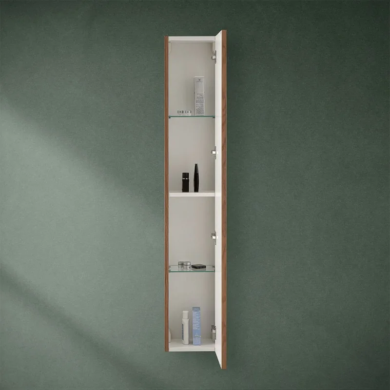 Pensile bagno sospeso – anta soft-close,installazione reversibile e ripiani regolabili in vetro