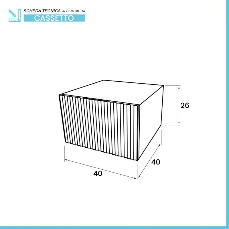 Cassetto sospeso 40 cm rovere naturale con anta cannettata Tevere