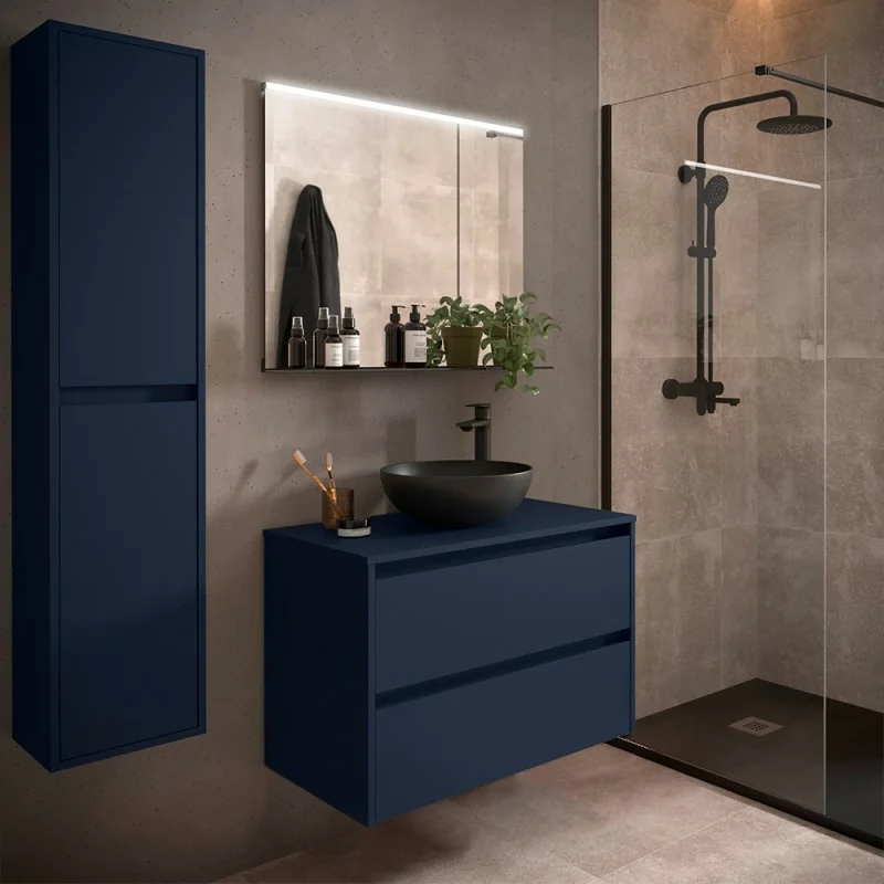 Colonna bagno sospesa 140 cm blu satinato ripiani regolabili Gaya